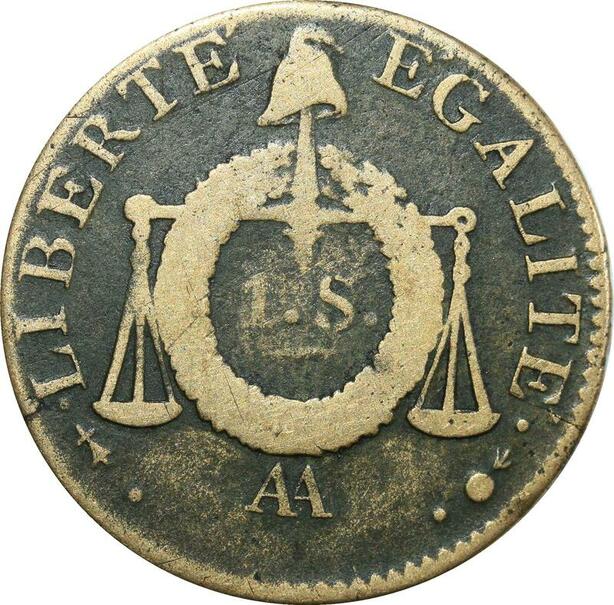 O9111 Inedit ?? France Convention Un Sol aux balances Louis XVI An II AA Metz sans date