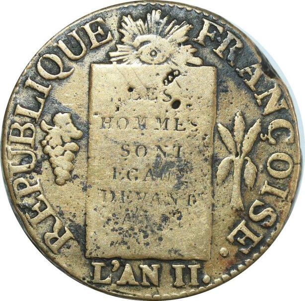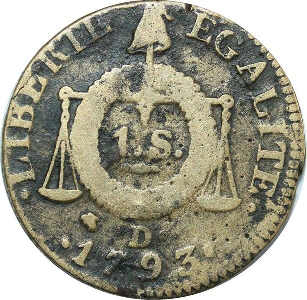 O9112 Rare France Convention Un Sol aux balances Louis XVI Françoise An II 1793 D. Dijon