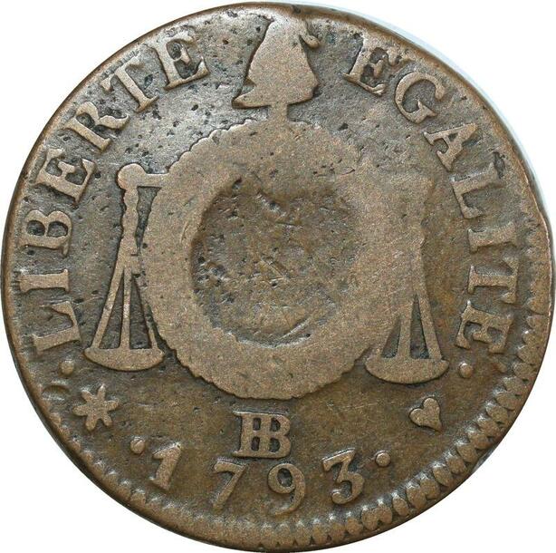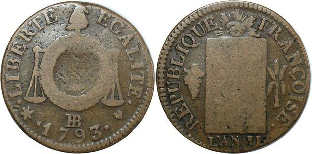 O9113 France Convention Un Sol balances Louis XVI Françoise An II 1793 BB Strasbourg ->M offre