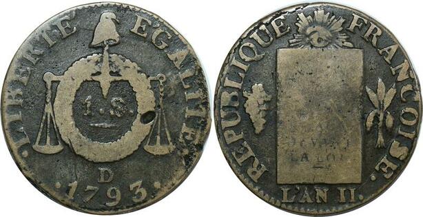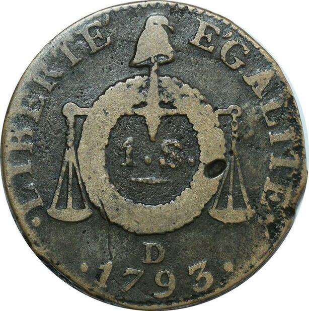 O9115 France Convention Un Sol aux balances Louis XVI Françoise An II 1793 D Lyon ->M offre