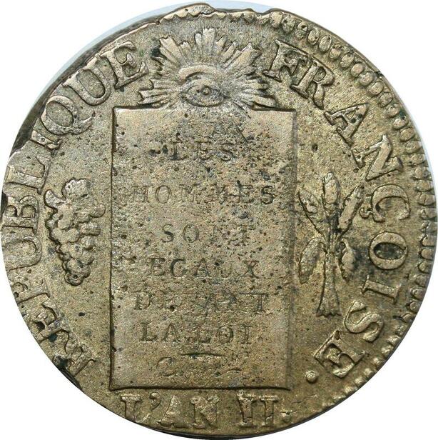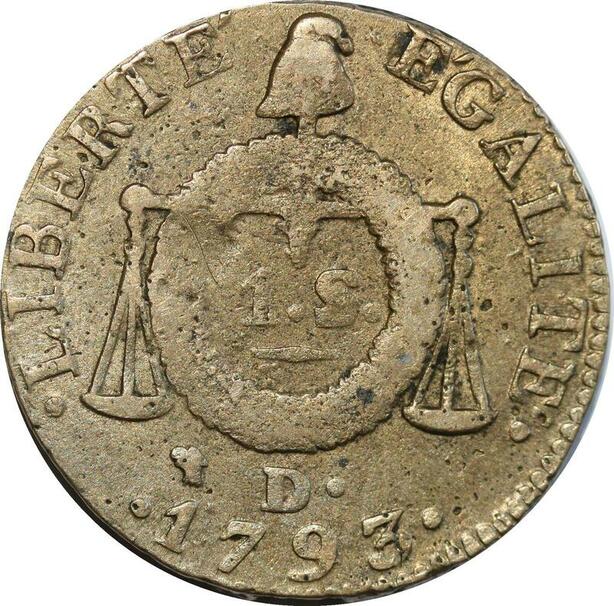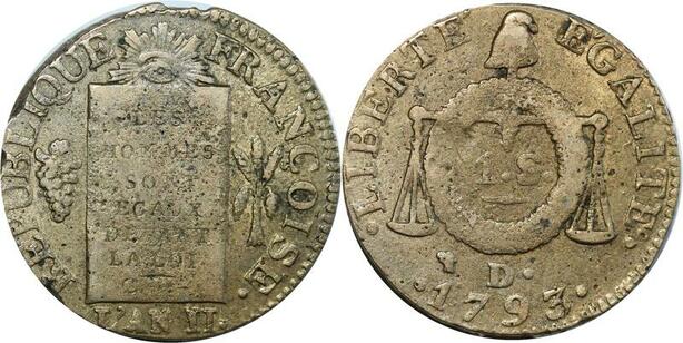 O9126 Rare France Convention Un Sol aux balances Louis XVI Françoise An II 1793 D. Dijon