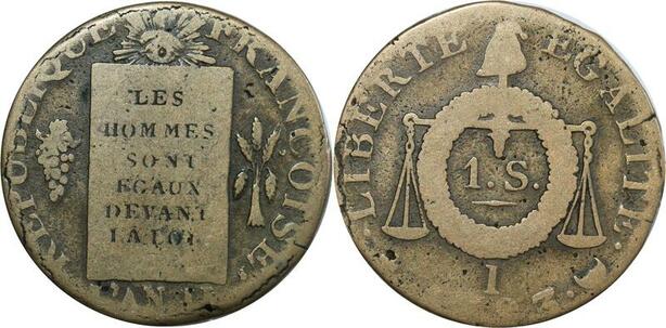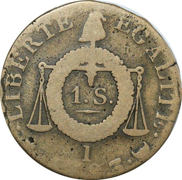 O9133 France Convention Un Sol aux balances Louis XVI Françoise An II 1793 I Limoges ->M offre