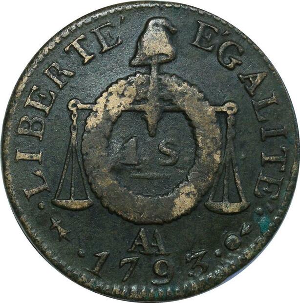 O9139 France Un sol aux balances Louis XVI Françoise An II 1793 AA Metz TTB ->M offre