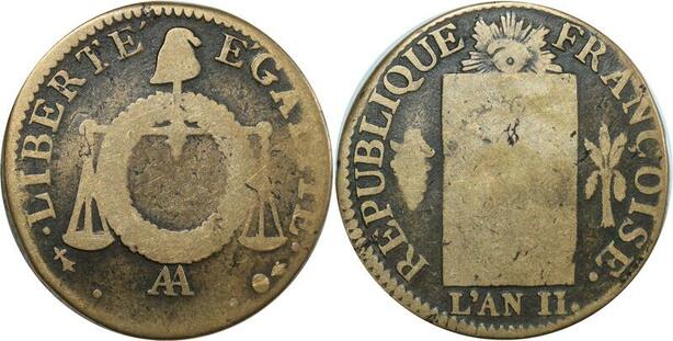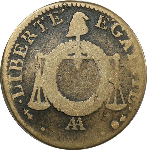 O9140 Inedit ?? France Convention Un sol aux balances Louis XVI An II AA Metz sans date