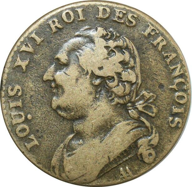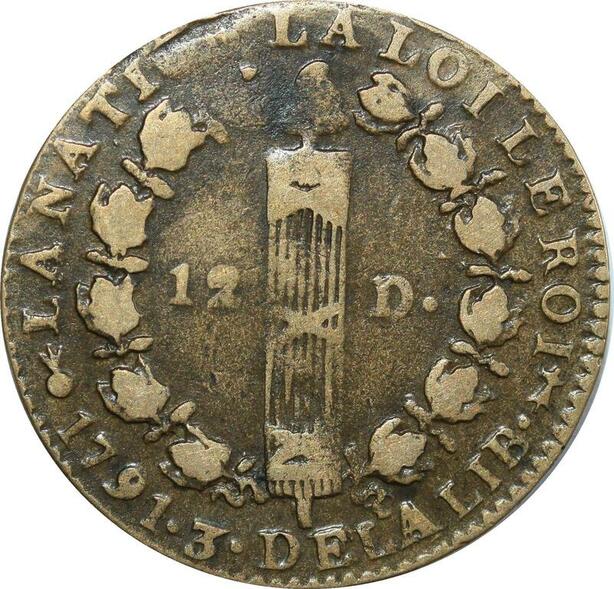 O9147 Rare France 12 Deniers Louis XVI François An 3 1791 2eme Sem AA Metz