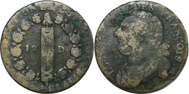 O9151 Rare France Constitution 12 Deniers Louis XVI François 1793 A Paris Leopard