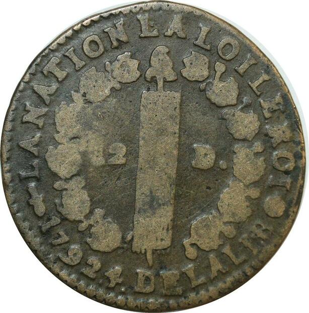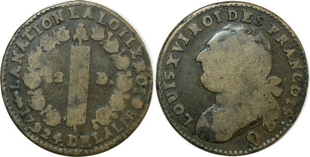 O9158 Rare France Constitution 12 Deniers Louis XVI François An 4 1792 Q Perpignan