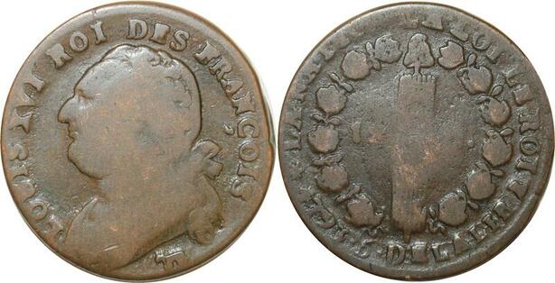 O9173 Rare France Constitution 12 Deniers Louis XVI An 5 1793 Pau Vachette Piefort ??