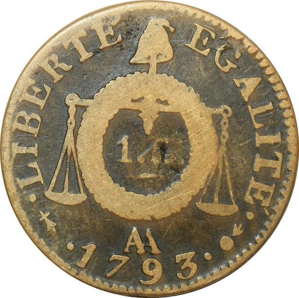 O9181 France Convention Un Sol aux balances Louis XVI Françoise An II 1793 AA Metz ->M offre