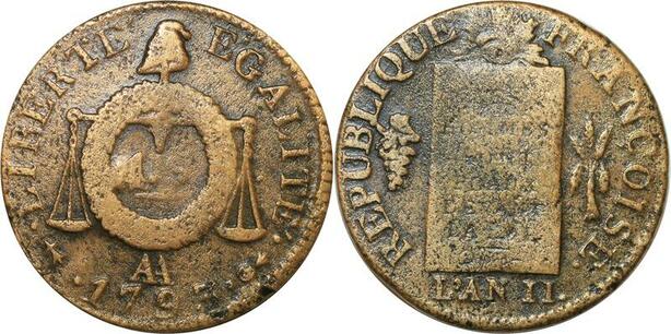 O9186 France Convention Un Sol aux balances Louis XVI Françoise An II 1793 AA Metz ->M offre