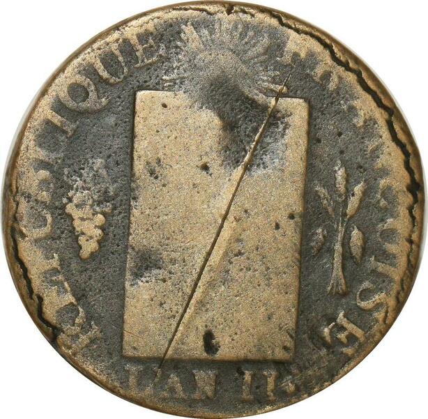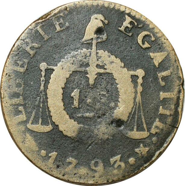 O9192 Très Rare France Un Sol aux balances Louis XVI An II 1793 sans atelier + Flan Epais