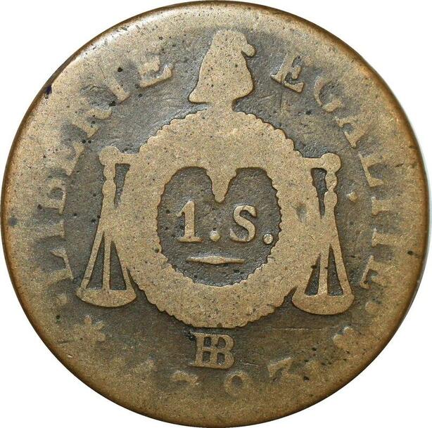 O9197 France Convention Un Sol balances Louis XVI An II 1793 BB Strasbourg ->Make offer