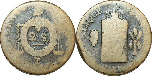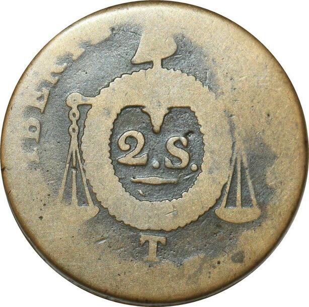 O9202 France Convention 2 Sols aux balances Louis XVI An II 1793 T Nantes ->Make offer