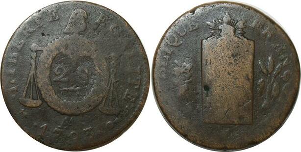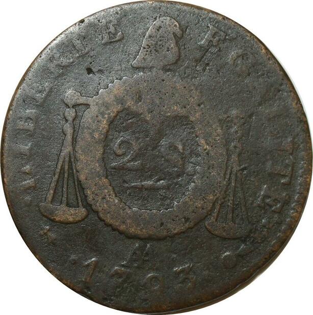 O9206 France Convention 2 Sols aux balances Louis XVI An II 1793 AA Metz ->Make offer