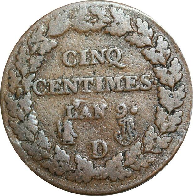 O9212 Rare 5 Centimes Dupré an 9 D Lyon ->Make offer