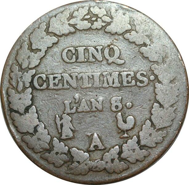 O9243 Directoire 5 Centimes Dupré an 8/5 A Paris / R Orléans ->Make offer