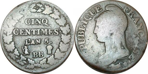 O9250 Directoire 5 Centimes Dupré an 5 BB Strasbourg ->Make offer