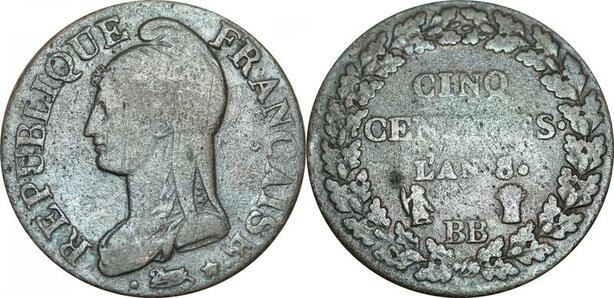 O9258 Directoire 5 Centimes Dupré an 8/6 BB Strasbourg ->Make offer