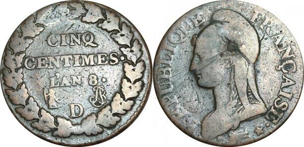 O9264 Directoire 5 Centimes Dupré an 8 D Lyon ->Make offer