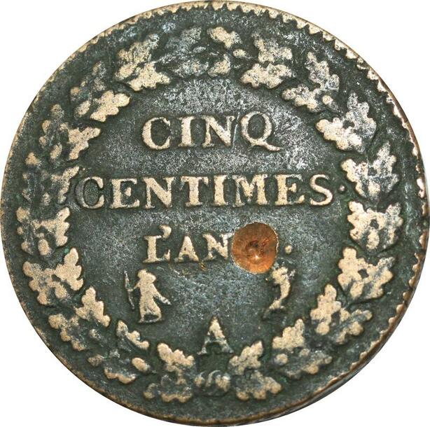 O9265 Directoire 5 Centimes Dupré an A Paris Percé ->Make offer