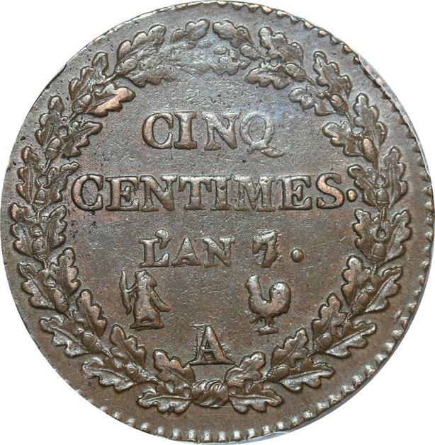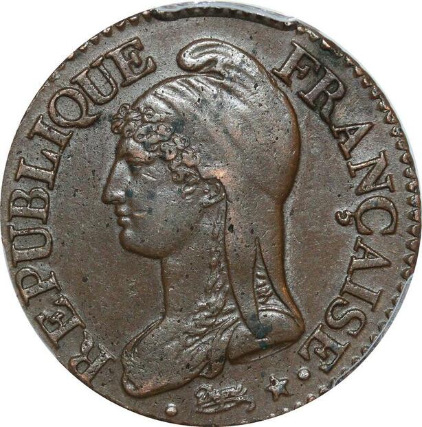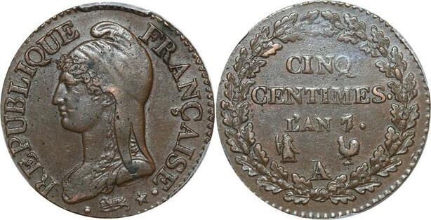 O9268 Finest !! 5 Centimes Dupré an 7/5 A Paris / R Orléans PCGS 62
