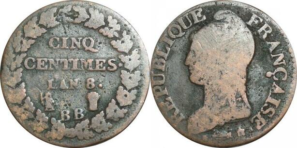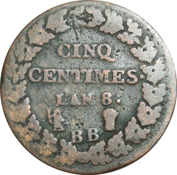 O9274 Directoire 5 Centimes Dupré an 8 BB Strasbourg ->Make offer