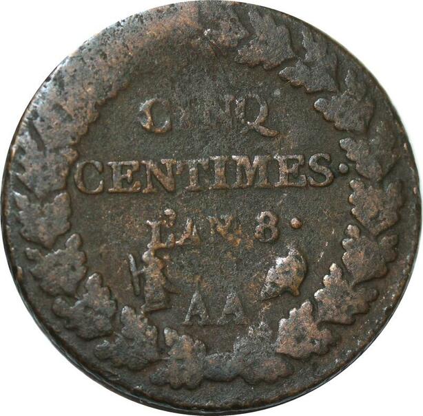 O9288 Directoire 5 Centimes Dupré an 8 AA Metz ->Make offer
