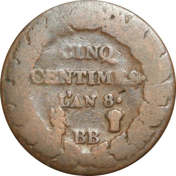 O9302 Directoire 5 Centimes Dupré an 8 BB Strasbourg / T Nantes ? ->Make offer