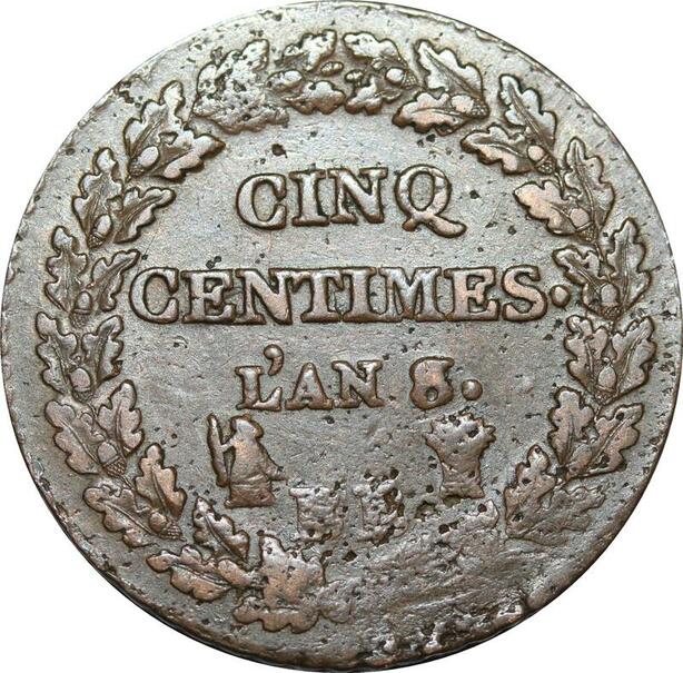 O9310 Directoire Rare 5 Centimes Dupré an 8/7 BB Strasbourg TTB !!! >Make offer