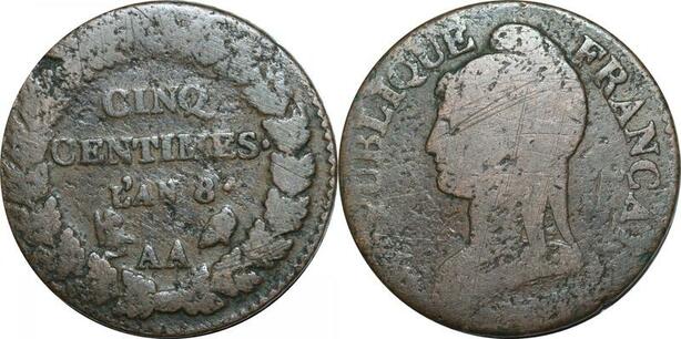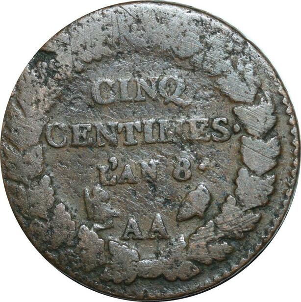 O9314 Directoire 5 Centimes Dupré an 8 AA Metz ->Make offer