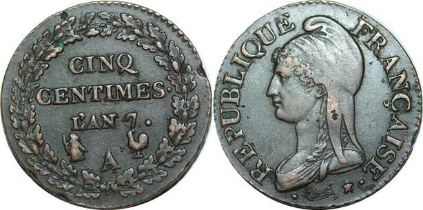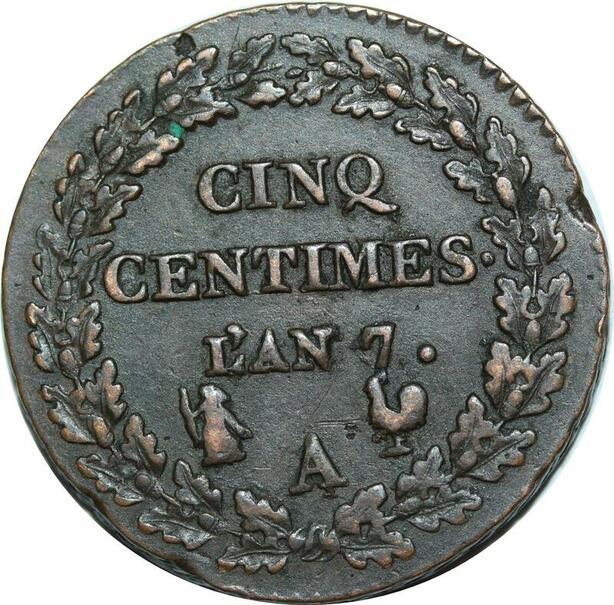 O9321 Directoire Rare 5 Centimes Dupré an 7/5 A Paris / R Orléans SUP ++++