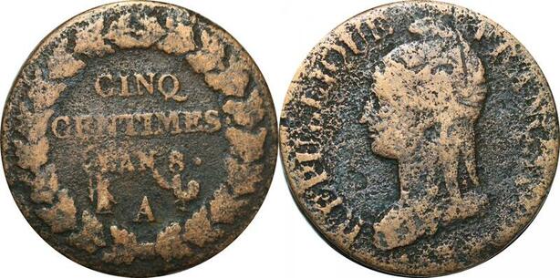 O9328 Directoire 5 Centimes Dupré an 8 A Paris ->Make offer