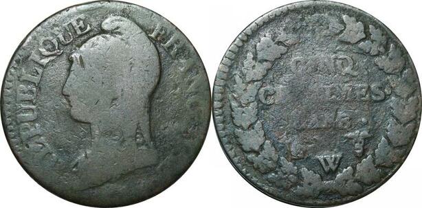 O9336 Directoire 5 Centimes Dupré an 8 W Double Frappe visible W/W ->Make offer