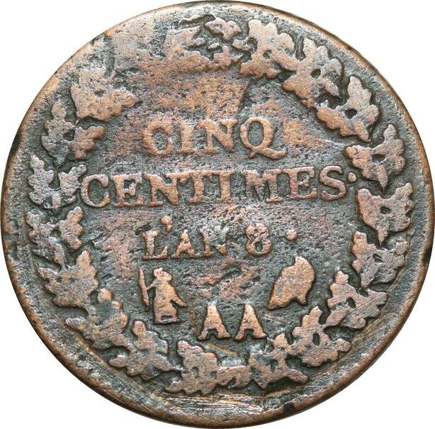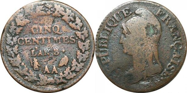 O9352 Directoire 5 Centimes Dupré an 8 AA Metz ->Make offer