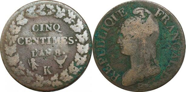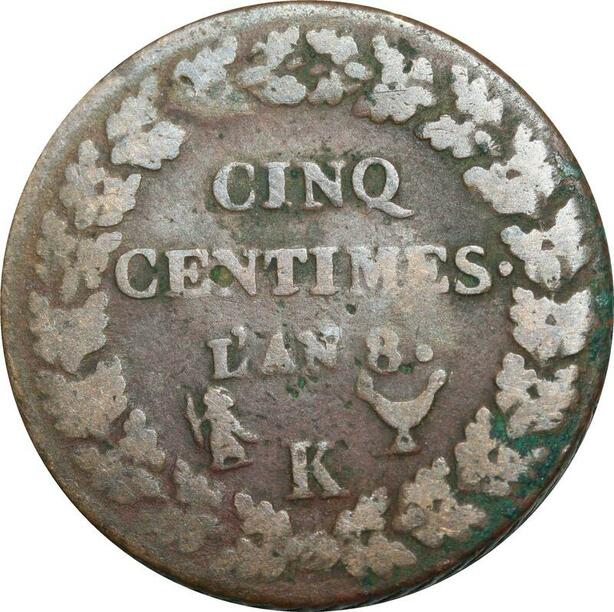 O9354 Directoire 5 Centimes Dupré an 8 K Bordeaux ->Make offer