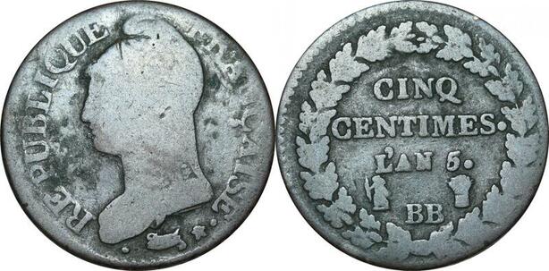 O9393 Directoire 5 Centimes Dupré an 5 BB Strasbourg ->Make offer