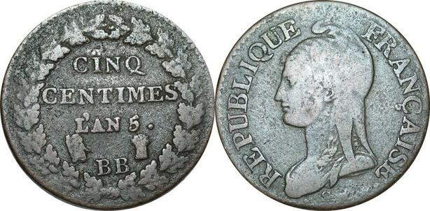 O9396 Directoire 5 Centimes Dupré an 5 BB Strasbourg ->Make offer