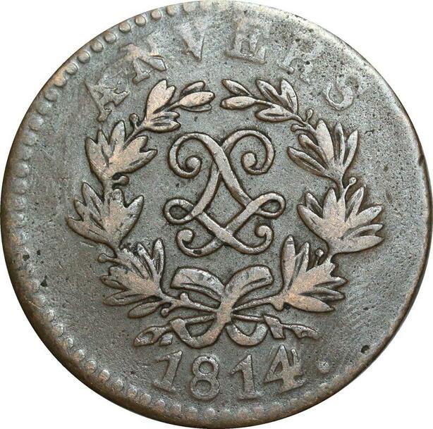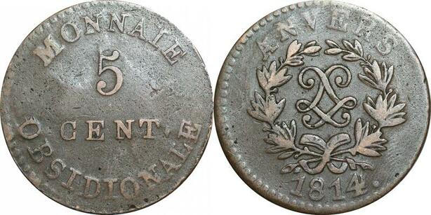 O9411 5 Centimes Anvers 1814 double L Frappe Arnesal Marine 1814 ->Make offer