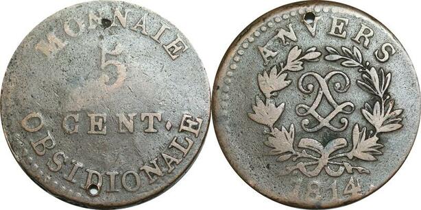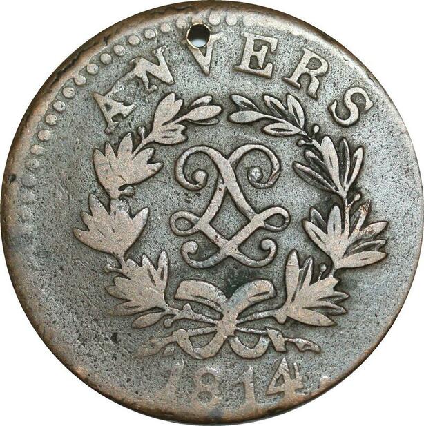 O9412 5 Centimes Anvers 1814 double L Frappe Arnesal Marine 1814 ->Make offer