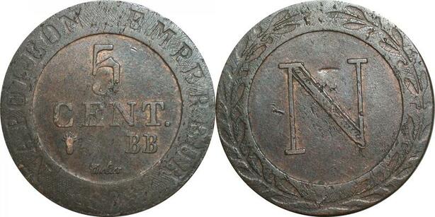 O9418 Rare 5 centimes Napoléon Ier 1808 BB Strasbourg SUP ->Make offer