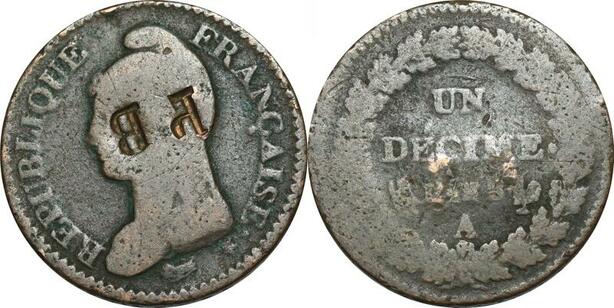 O9436 France Directoire Un Décime Dupré An 8 A Paris contremaque PB ->Make offer