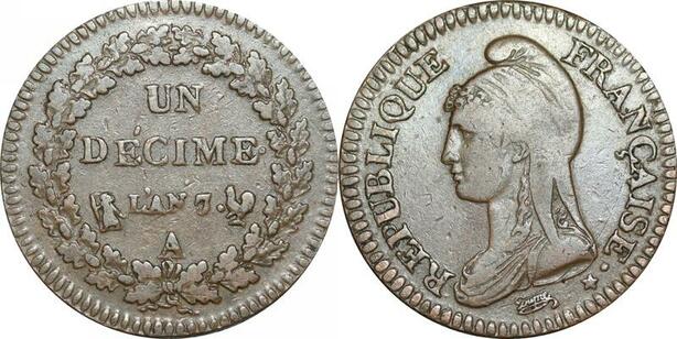 O9444 Rare Directoire Fautée Décalée Un D Décime Dupré an 7/5 A Paris ->F offre