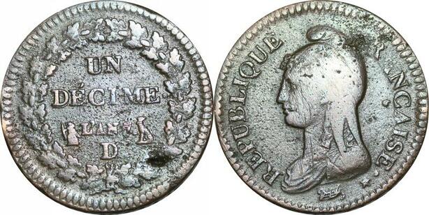 O9452 France Directoire Un Décime Dupré An 7/5 D Lyon ->Make offer