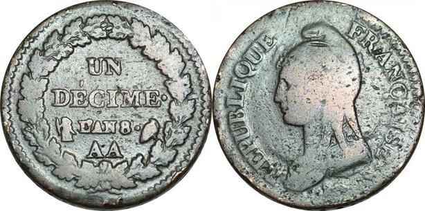 O9458 France Directoire Un Décime Dupré An 8 AA Metz ->Make offer