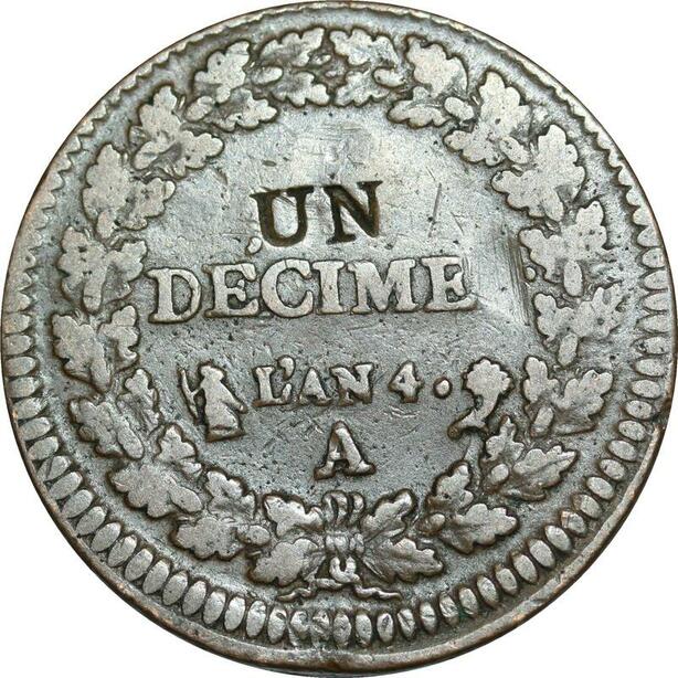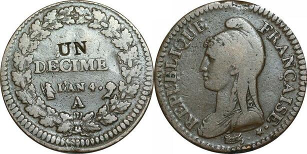 O9461 Rare France Directoire Contremarque UN Décime Dupré An 4 A Paris ->Make offer