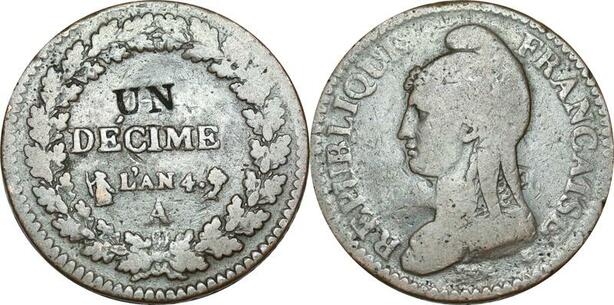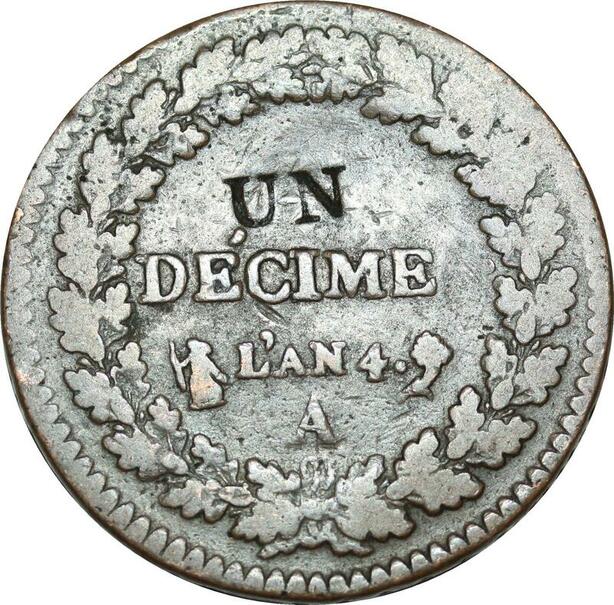 O9464 Rare France Directoire Contremarque Un Décime Dupré An 4 A Paris ->Make offer