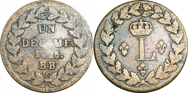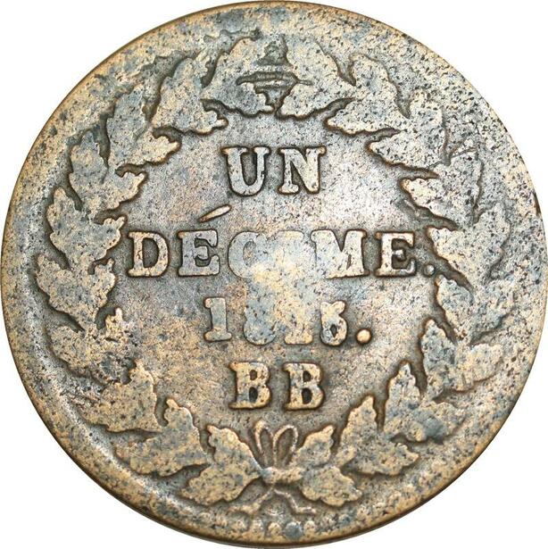 O9472 France Un Décime Louis XVIII L couronné 1815 BB Strasbourg .. ->Make offer