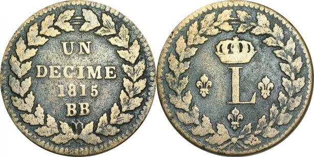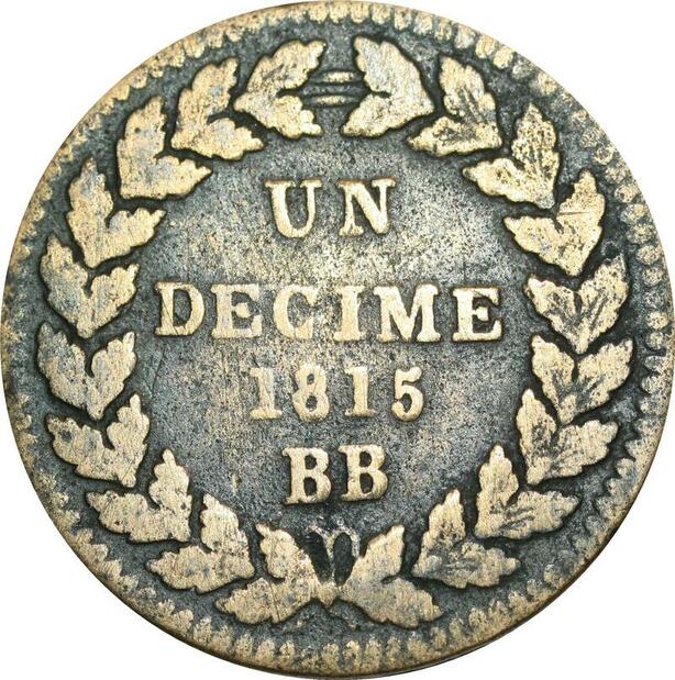 O9474 France Très Rare Un decime Louis XVIII L couronné 1815 BB Strasbourg ss point
