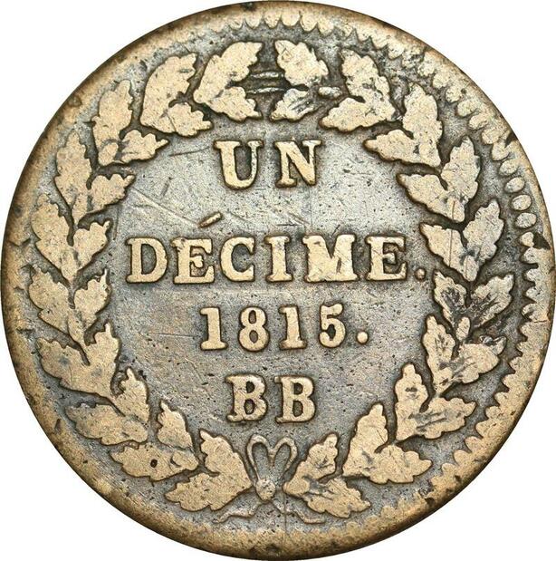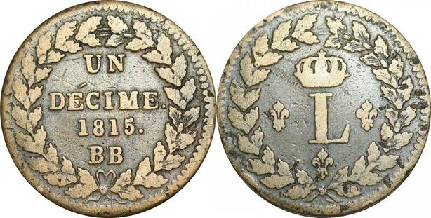 O9477 France Un Décime Louis XVIII L couronné 1815 BB Strasbourg .. ->Make offer