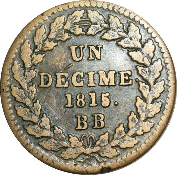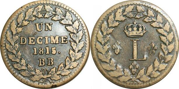 O9478 Rare France Un Décime Louis XVIII L couronné 1815 BB Strasbourg .. ->Make offer